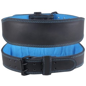 - Padded leather 4 inch weightlifting belt with contoured design for added comfort.